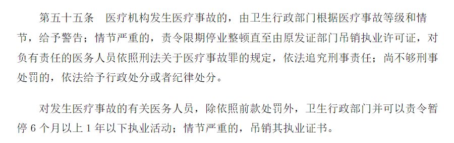 赵良善称,二是行政处罚,《医疗事故处理条例》第五十五条规定,发生医疗事故,除了医生及医院要承担医疗事故赔偿责任外,还应当承担以下行政责任:
